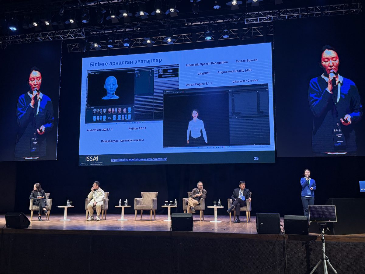 At the panel session “Education of the Future: Technologies and Resources,” Dr. Zhanat Makhataeva, Senior Data Scientist at the Institute of Smart Systems and Artificial Intelligence (ISSAI) at Nazarbayev University, delivered a presentation titled “Avatars, Augmented Reality and Artificial Intelligence in Education.”