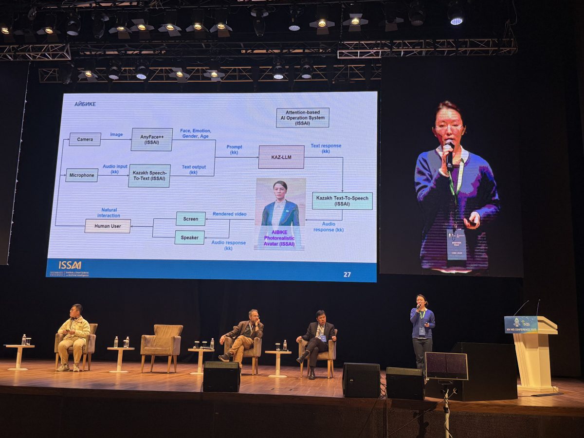 Additionally, she shared insights from ISSAI’s Summer Research Program, where students from across Kazakhstan work alongside ISSAI researchers on applied AI and robotics projects. These initiatives aim to inspire early scientific curiosity and develop the next generation of AI talent in Kazakhstan.