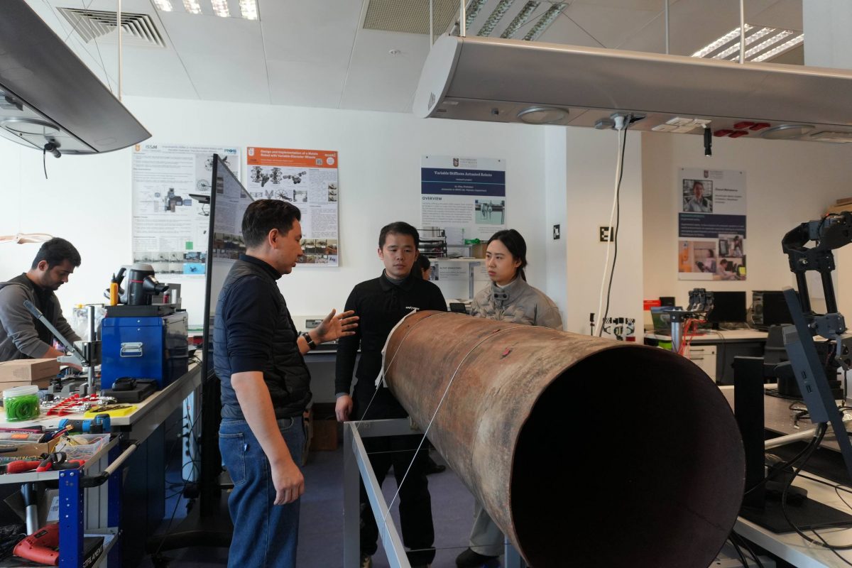 During the visit, Aigerim Sarsenova, Senior External Affairs Manager at ISSAI, presented the institute’s ongoing work and research directions. Dr. Azamat Yeshmukhametov, Head of the Advanced Robotics and Mechatronics Laboratory, and Research Assistant Gourav Moger introduced the laboratory’s projects and capabilities in robotics and intelligent systems.