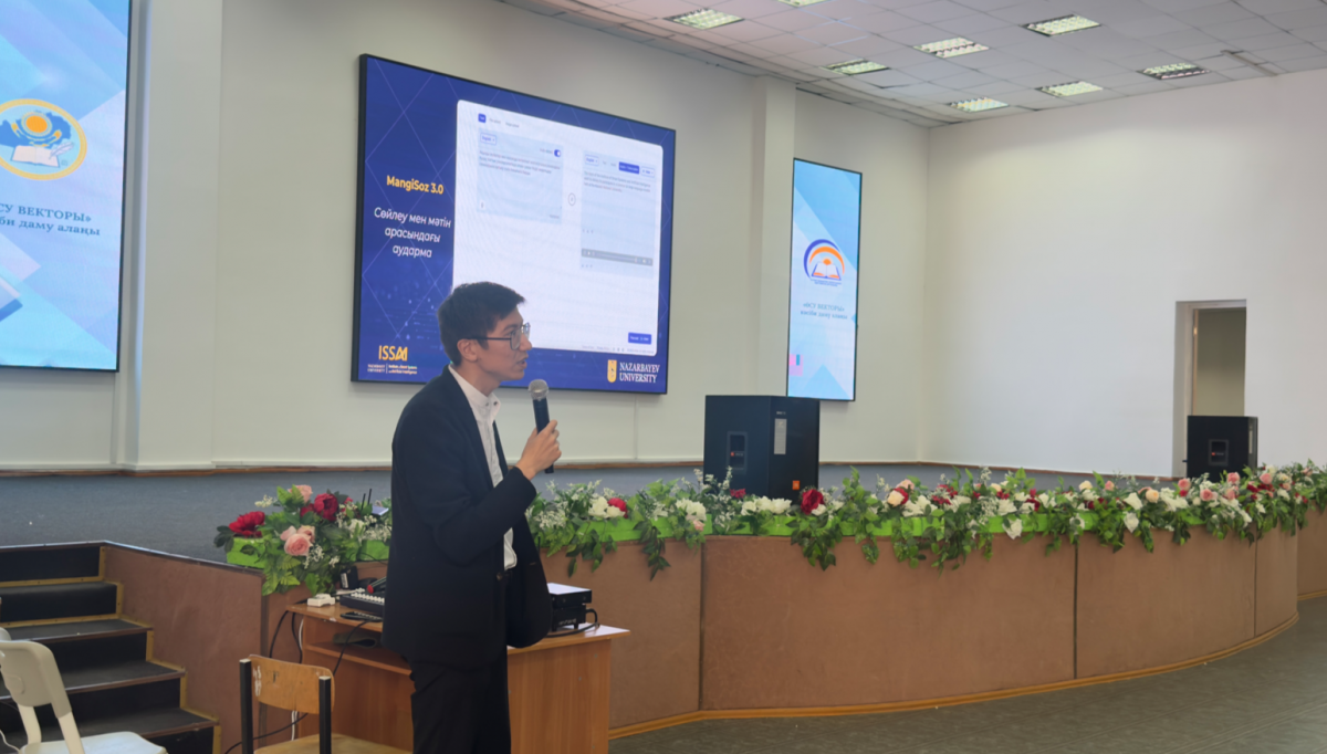 От имени ISSAI Аналитик данных Акылбек Максутов выступил с презентацией на тему «Отечественный ИИ: новые возможности в образовании». В своем выступлении он подчеркнул растущую роль отечественных технологий искусственного интеллекта в сфере образования, а также их потенциал в поддержке преподавания, обучения и управления школой.